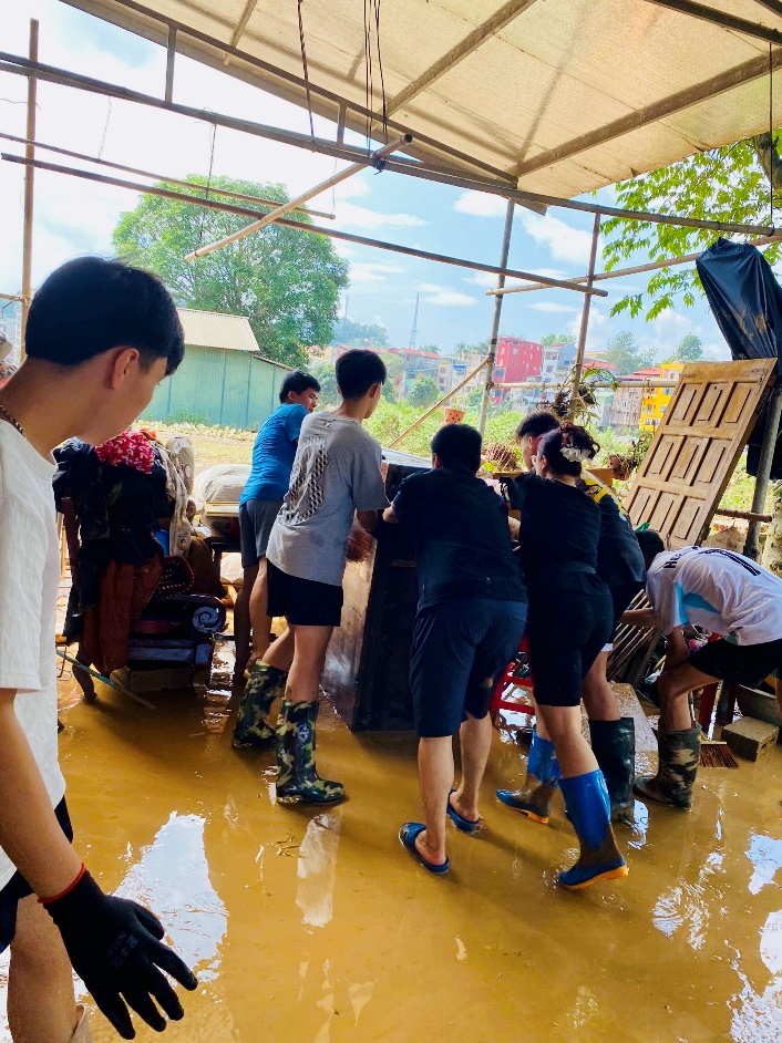 Ngay sau khi nước rút, với tinh thần đoàn kết, sẻ chia khó khăn, tập thể cán bộ, giáo viên và học sinh trường THPT thành phố Cao Bằng đã cùng chung tay tổ chức nhiều đợt hỗ trợ dọn dẹp vệ sinh, thu gom bùn đất, sắp xếp lại đồ đạc cho các gia đình bị ảnh hưởng. Hình ảnh thầy cô giáo cùng các em học sinh lội bùn, quét dọn trong từng ngõ nhỏ, từng căn nhà, hay ánh đèn pin soi sáng để làm việc đã trở thành minh chứng sống động cho tinh thần “tương thân tương ái”, không quản ngại vất vả để giúp đỡ nhau vượt qua hoạn nạn. Một giáo viên chia sẻ: “Sau cơn bão, chúng tôi mất mát rất nhiều, nhưng bù lại nhận được tình yêu thương và sự chung tay giúp đỡ. Đó là điều vô giá, giúp chúng tôi có thêm nghị lực để vượt qua khó khăn. Khi nhìn thấy học trò và đồng nghiệp của mình đến giúp dọn nhà, tôi thực sự nghẹn ngào. Trong lúc khó khăn nhất, chúng tôi đã không đơn độc.”